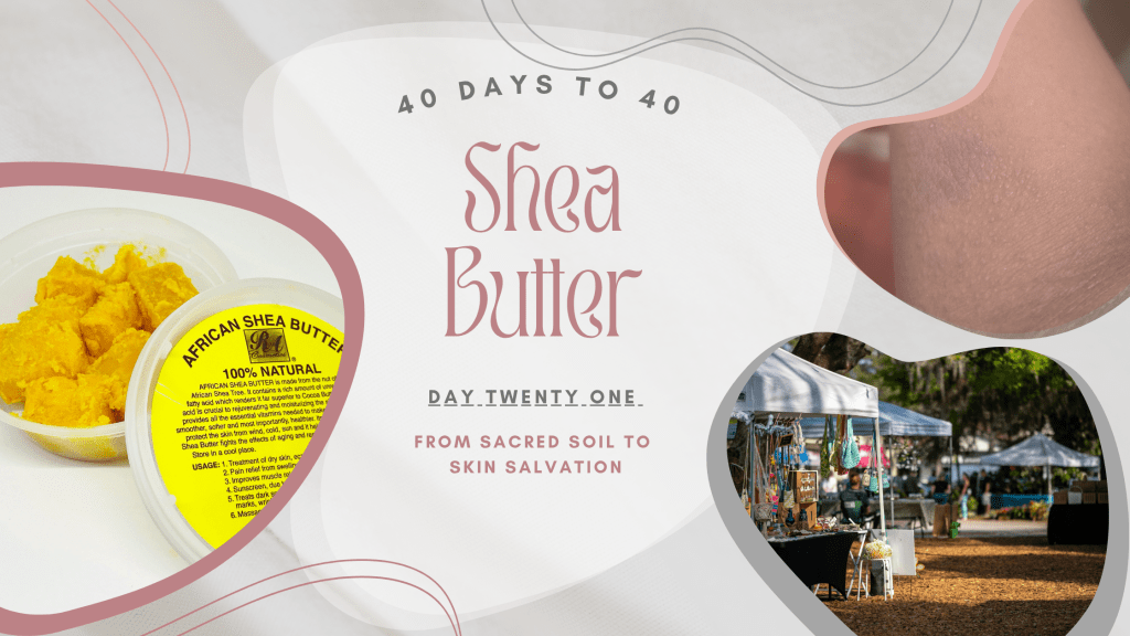 That day, I stopped at a vendor’s table. She was older, radiant, with skin that glowed like it drank the sun. She had this big yellow brick on display and talked passionately about how good it was for the skin — “Raw shea butter,” she called it.